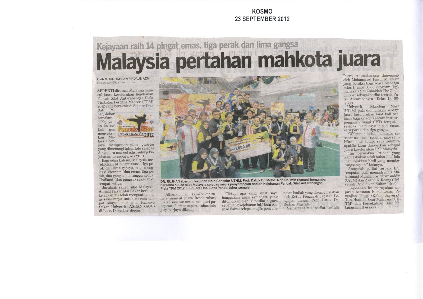 Pegawai Kebudayaan Universiti Tun Hussein Onn Malaysia (UTHM), Muhammad Shahrin Haron dinobatkan sebagai johan dalam pertandingan Sayembara Deklamasi Puisi Kemerdekan Peringkat Negeri Johor yang berlangsung pada 13 Oktober lalu bertempat di Lenggaran Segget, Johor Bahru.